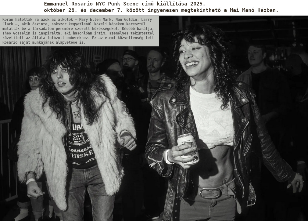 Emmanuel Rosario NYC Punk Scene című kiállítása 2025. október 28. és december 7. között ingyenesen megtekinthető a Mai Manó Házban.
